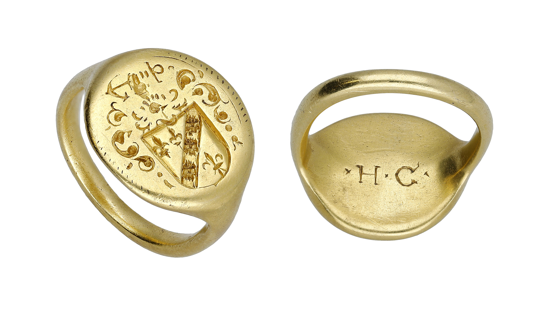 “The ring dates from 1620 and very likely belonged to Humphrey Cockeram of Cullompton in Devon. The ring bears a seal with the coat of arms of the Cockeram family and the initials ‘H C’ behind,” said Nigel Mills, a consultant on artifacts and antiquities at Noonans.
