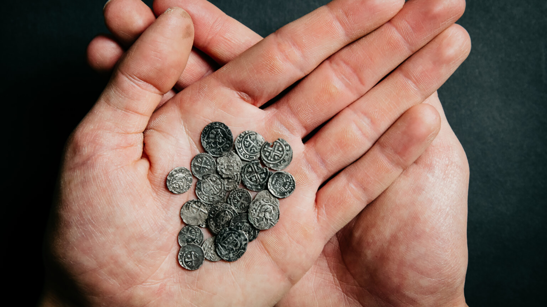 The coins, believed to be from 1200 to 1250, were from the Diocese of Utrecht, which included several counties, and from the German empire, with the youngest copies made around 1248 when King William II ruled the Holy Roman Empire. Small pieces of textiles indicate they were wrapped in a cloth or bag.