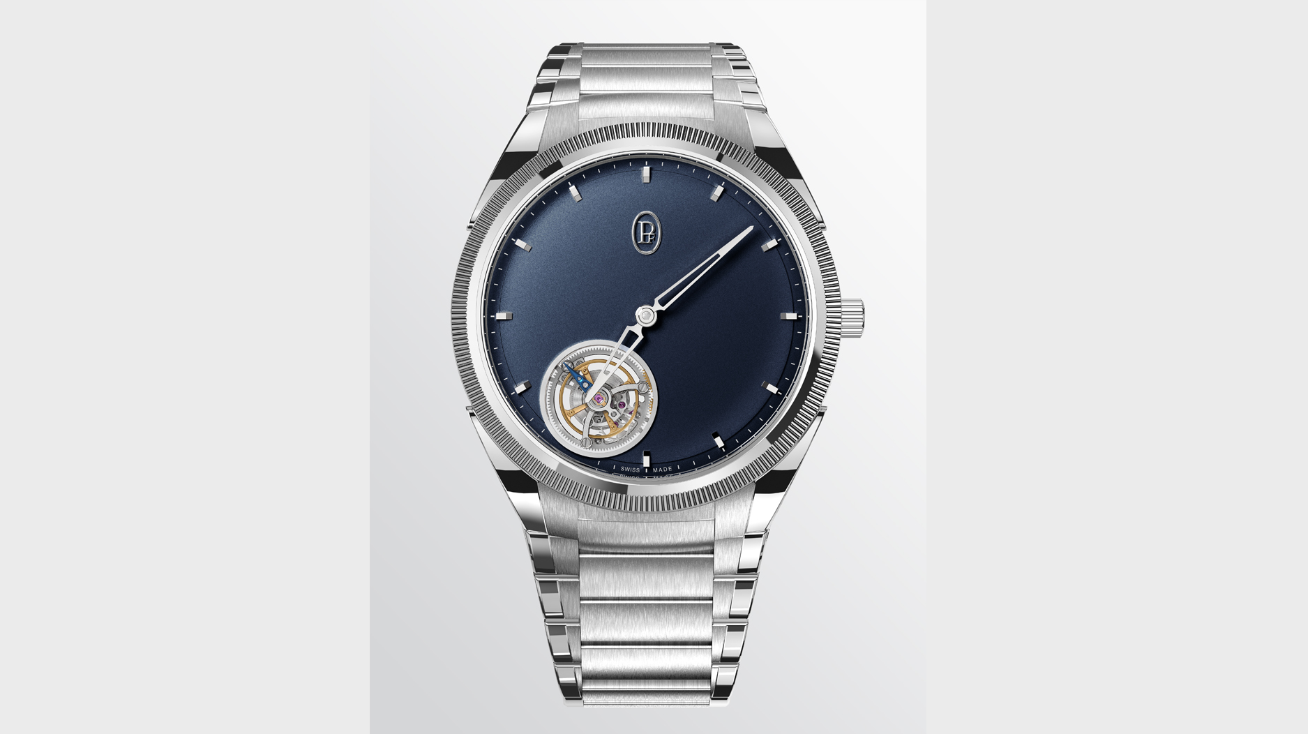 The Tonda PF Tourbillon differs with its Milano blue dial. It is powered by the PF517 automatic winding manufacture movement with flying tourbillon and platinum micro-rotor.