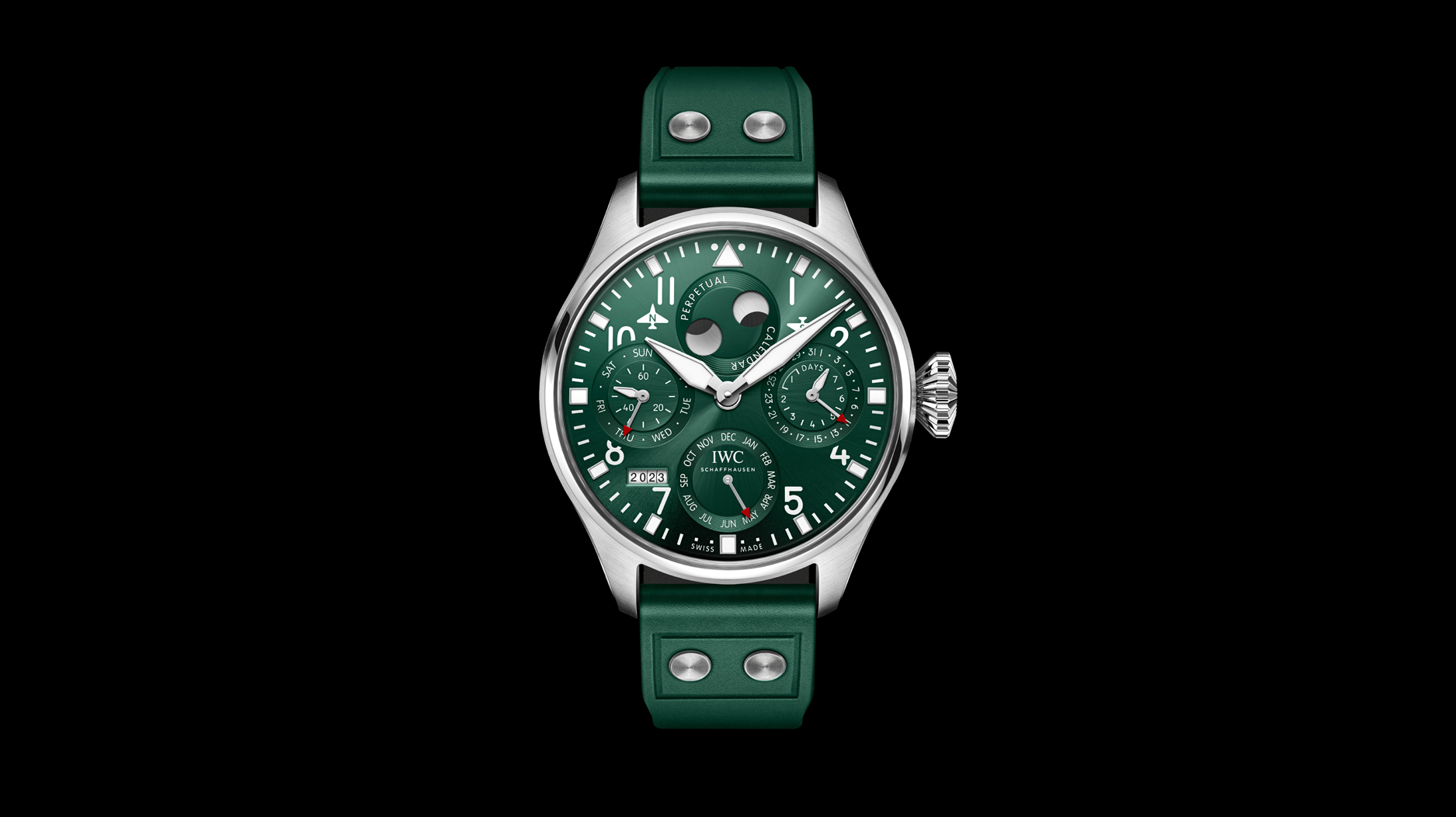 Also new for the brand is the IWC Pilot’s Watch Perpetual Calendar in stainless steel with racing green dial.