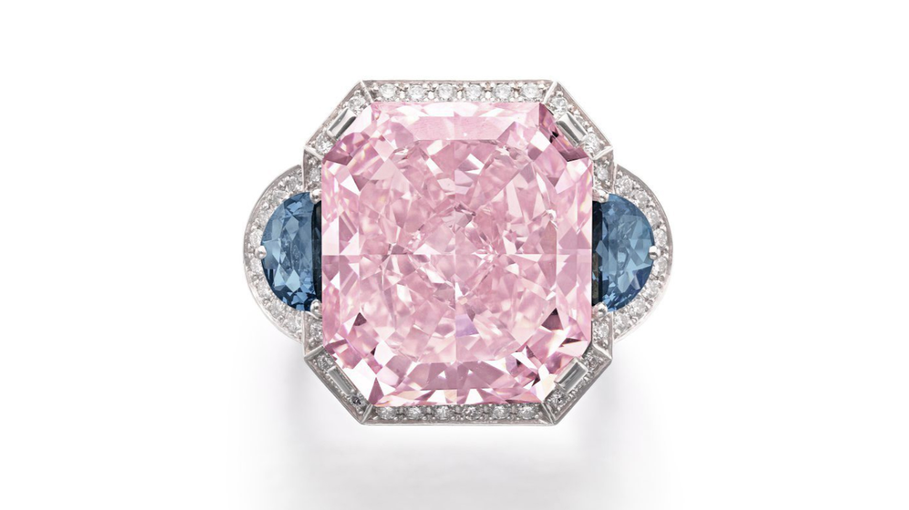 It purchased one, the below 21.94-carat cut-cornered rectangular modified brilliant-cut fancy intense pink diamond set between 0.51-carat and 0.46-carat half-moon fancy deep grayish blue diamonds in a ring, for $11.8 million.