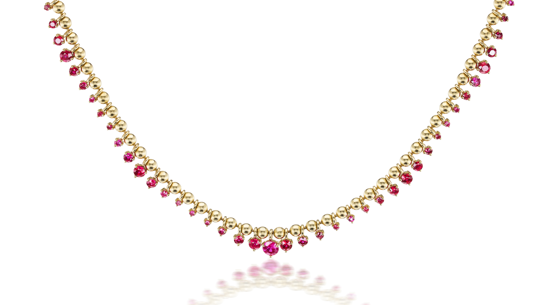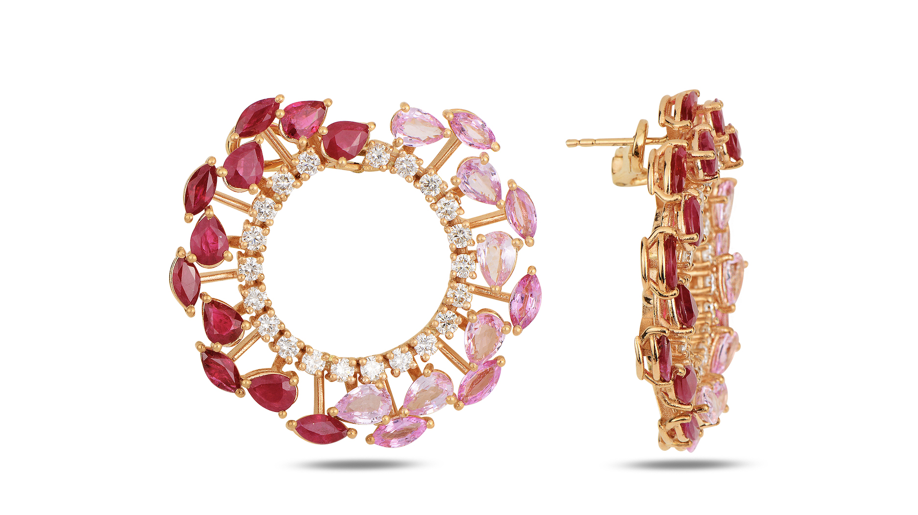 Diamonds and Burmese rubies act as the seeds on 18-karat gold leaves in Studio Renn’s thoughtful meditation on nature.