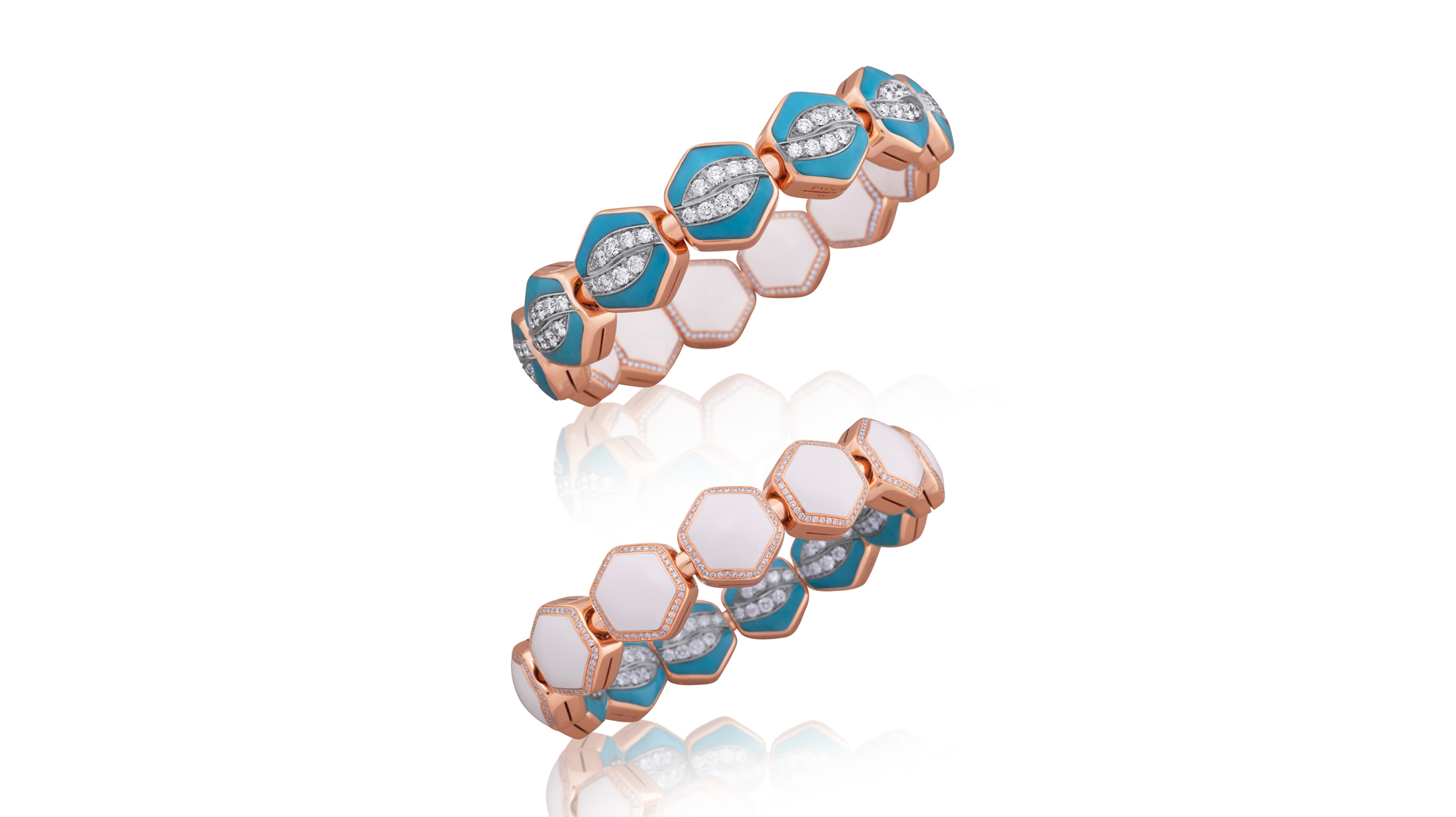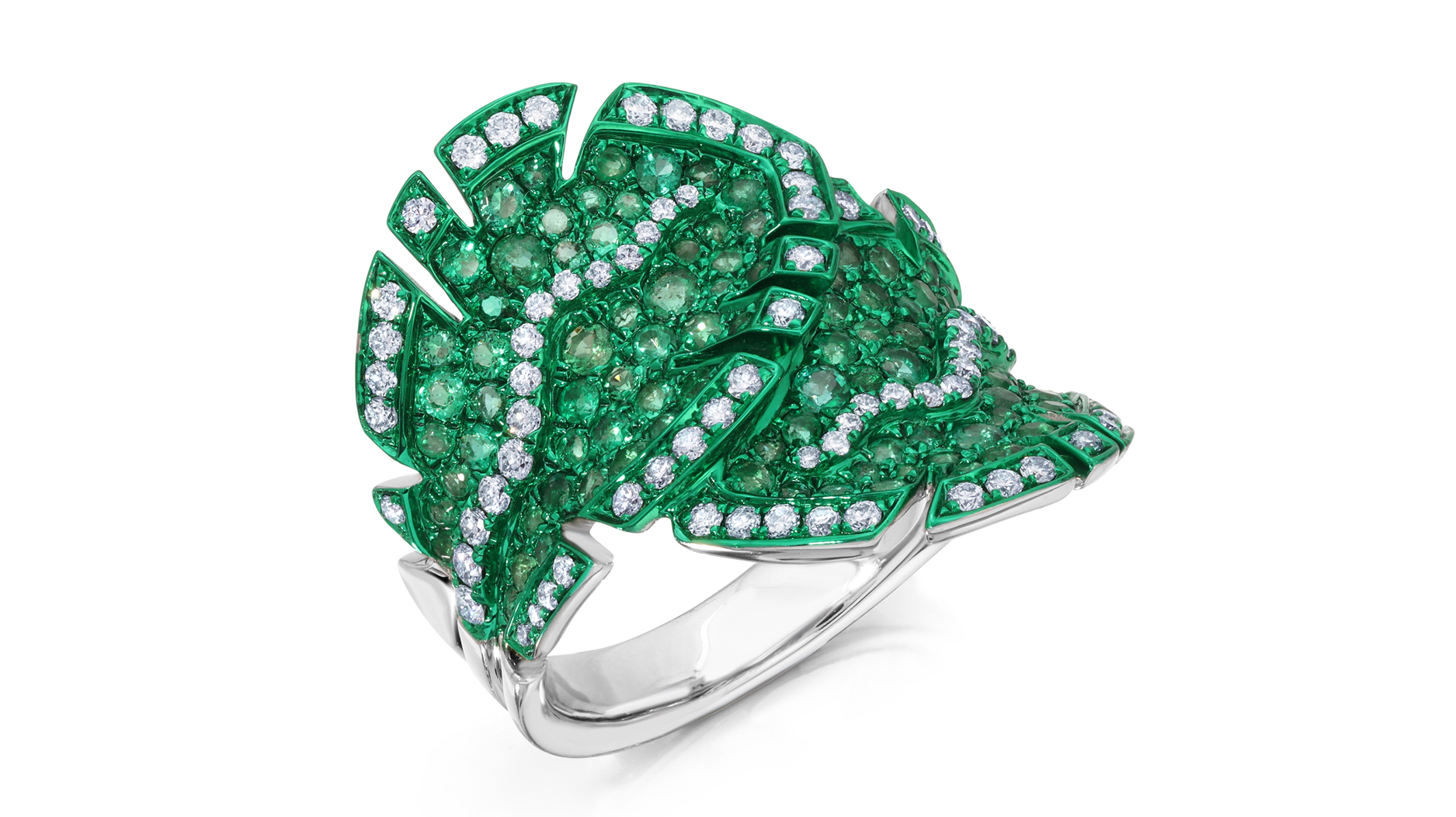 Bright pops of enamel make materials like emeralds and diamonds feel totally new and unexpected.