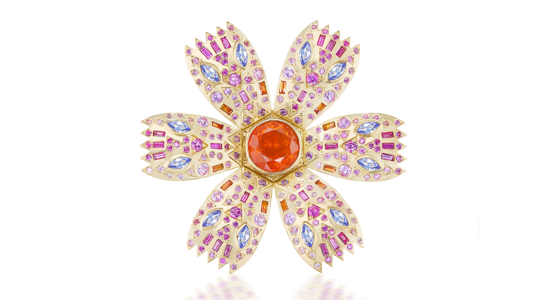 Filled with multicolor sapphires, it draws upon the designer’s own childhood remembrances in Montreal.