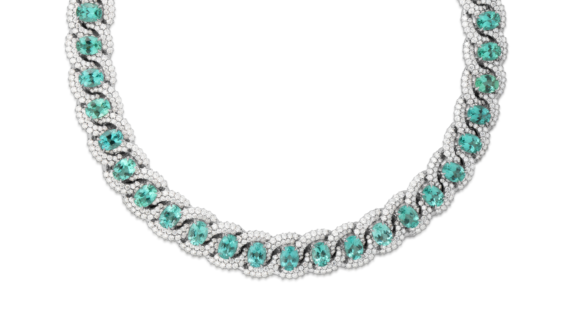 At booth 222, pick through a treasure trove of one-of-a-kind designs, like the above Paraíba tourmaline and diamond collar.