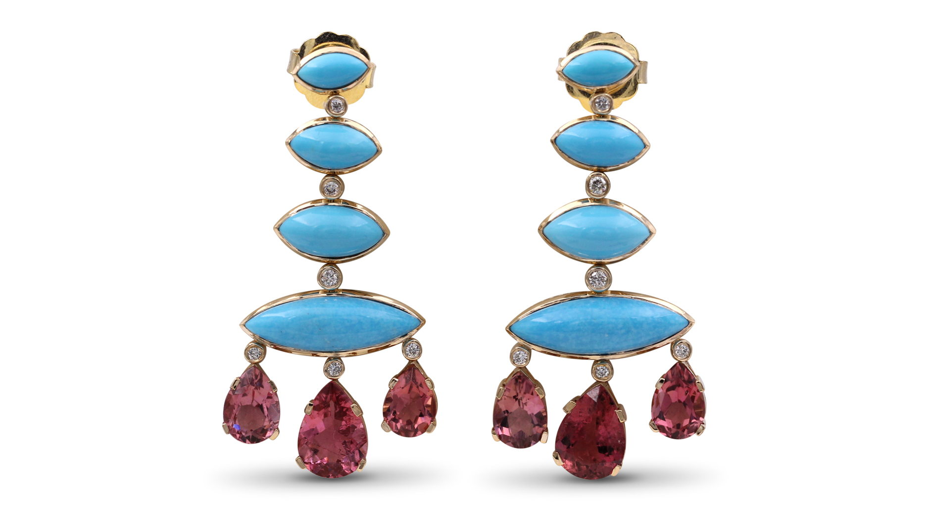 Like its name implies, Kaleidoscope explores repeating patterns rendered in diamonds and colored gemstones. The result is wearable, happy jewelry.
