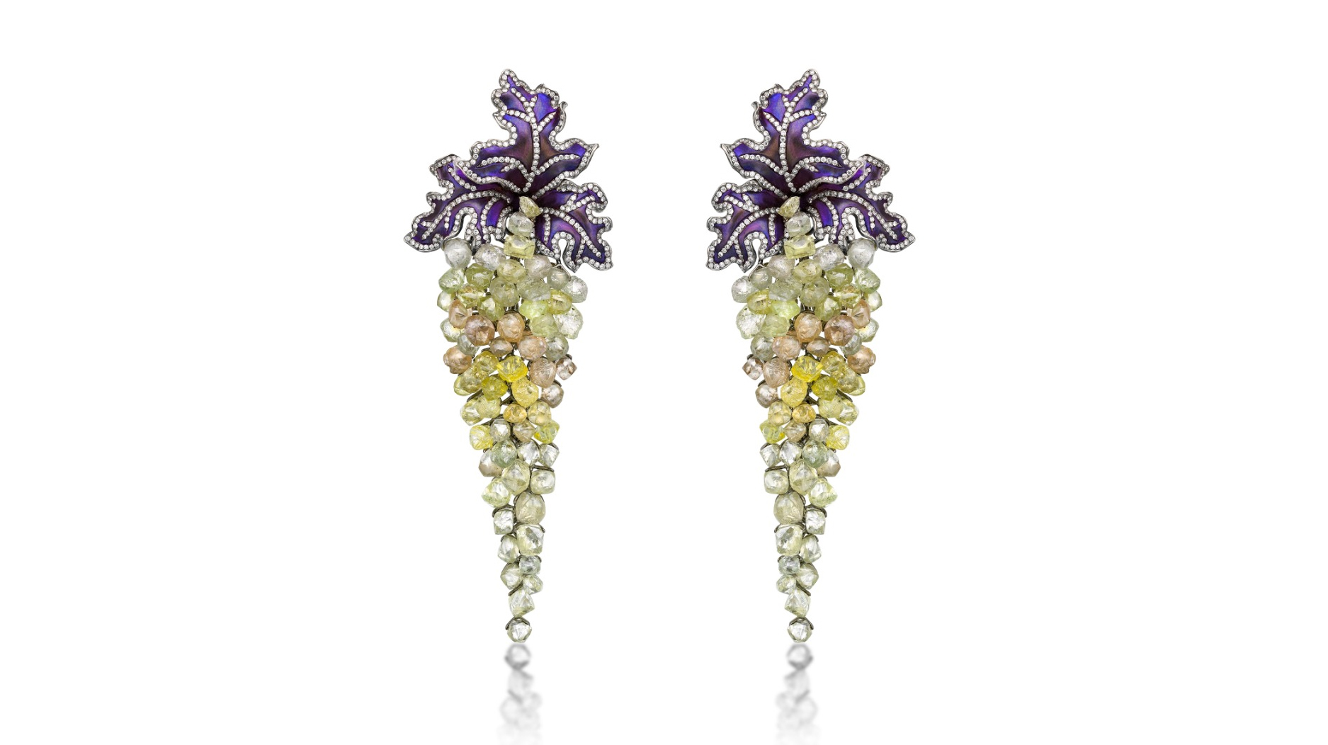 One resulting piece is the above pair of kite-shaped diamond earrings inspired by India’s Kite Festival. In Bohra’s design the 238 diamonds fold like fabric, exuding a lightness belying the jewel’s scale.