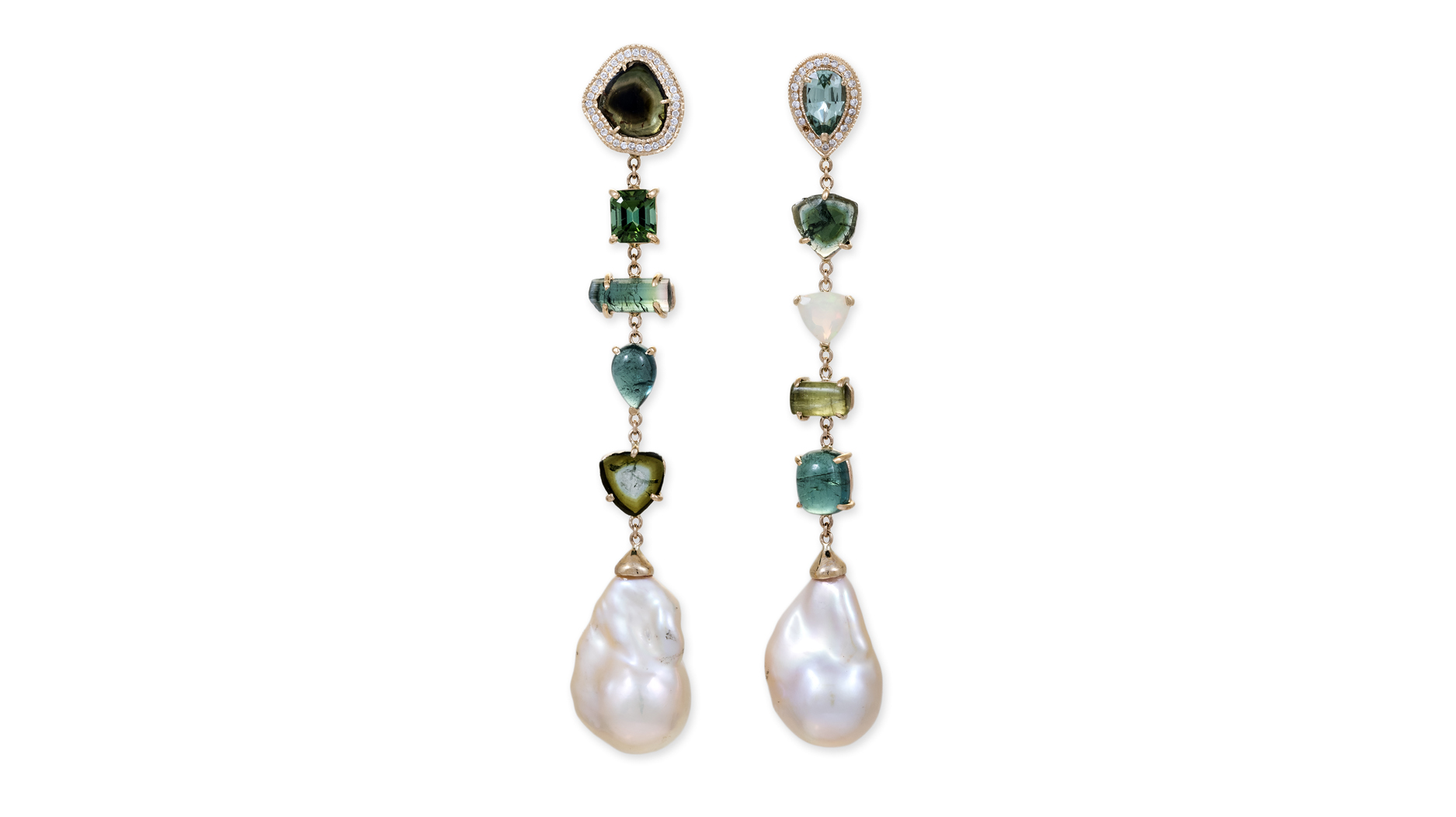 There’s no limit to Assael’s innovation of pearl jewelry designs, as evidenced by the above earrings featuring multicolor pastel baby Akoya pearls surrounding tourmaline.