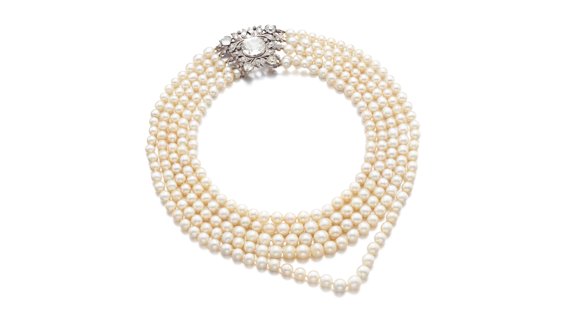 Another sale highlight is the five-strand natural pearl necklace, below, estimated to sell for between $157,000 and 246,000.