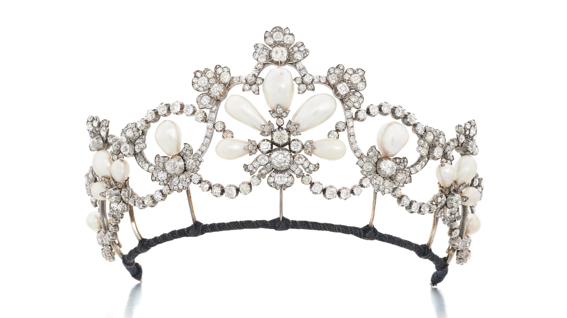 The final top lot, with a $302,000 to $504,000 pre-sale estimate, is the natural pearl and diamond tiara, seen below, created by Viennese court jeweler Köchert.