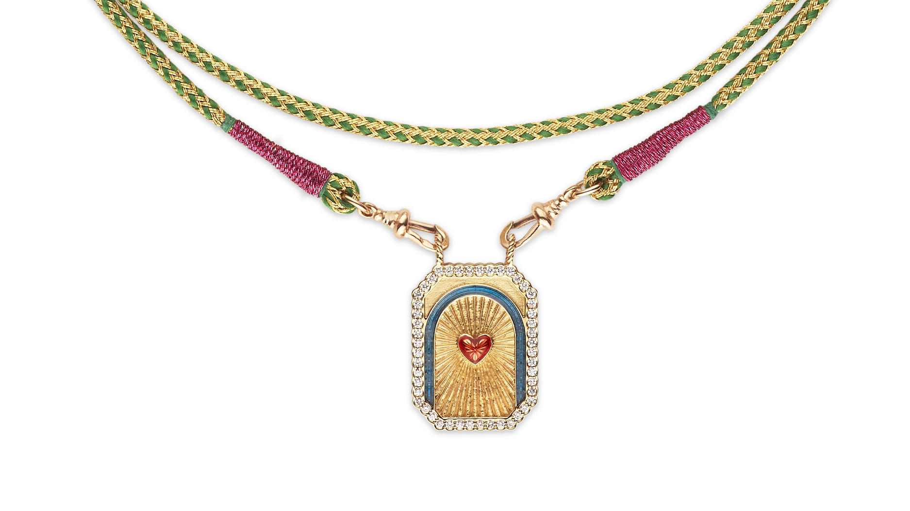 The “Scapular” necklace, based on the religious pendant style, has followed the same formula, reinventing a classic piece with color and personality.