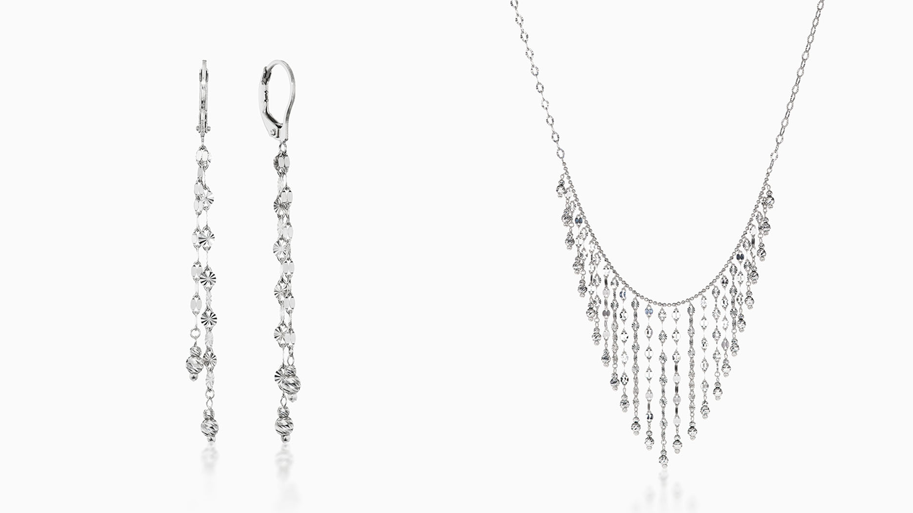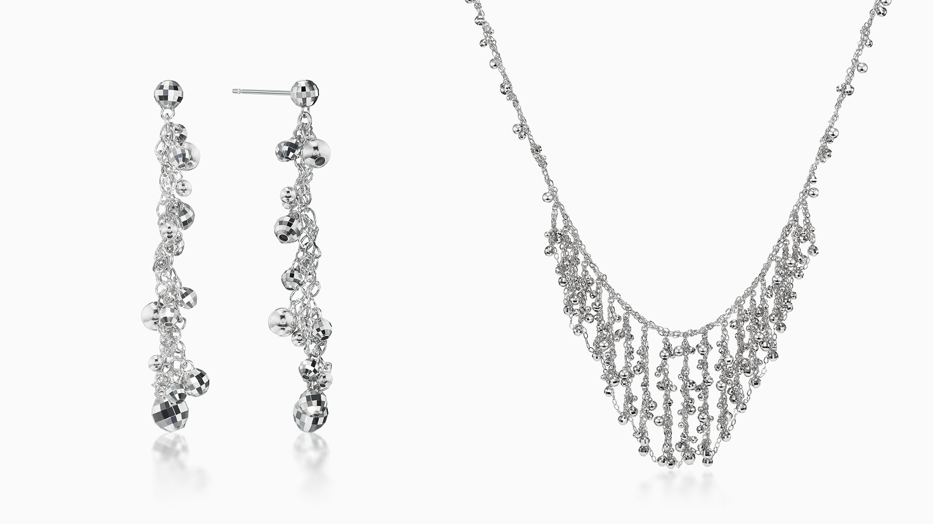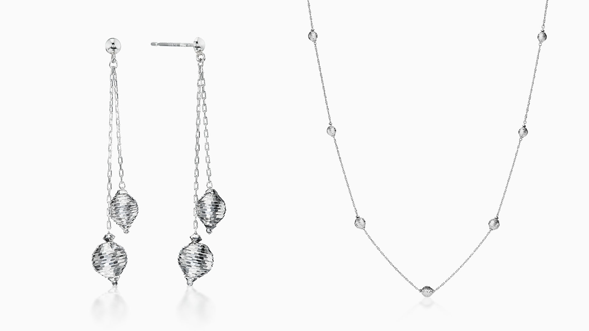 As in previous offerings, the new collections feature the brand’s signature faceted platinum beads adorning a variety of drop earrings, single- and double-strand necklaces that can be worn alone or layered for greater effect, and tassel-style earrings and necklaces.