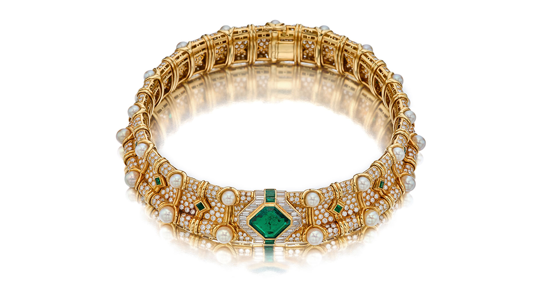 Barbara received several jewelry gifts from her lover over the years, including the two pieces featured in the upcoming sale—a Bulgari emerald, diamond and cultured pearl choker and a 16.19-carat diamond ring.