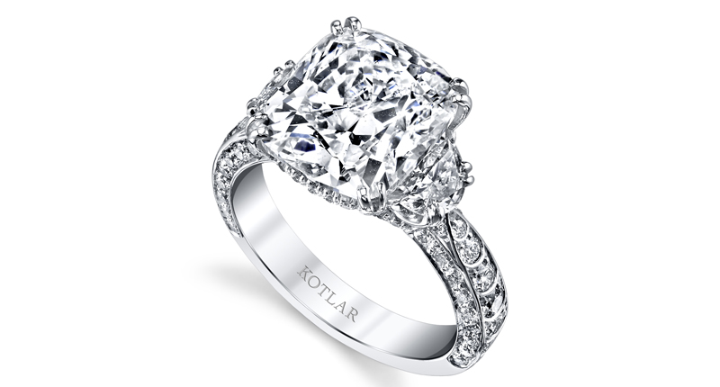 The brand’s first designs included the Artisan Pavé Scallop, Criss Cross and Chevron collections. They went on to patent the Kotlar Cushion, a cushion-cut diamond featuring 61 facets to maximize brilliance.