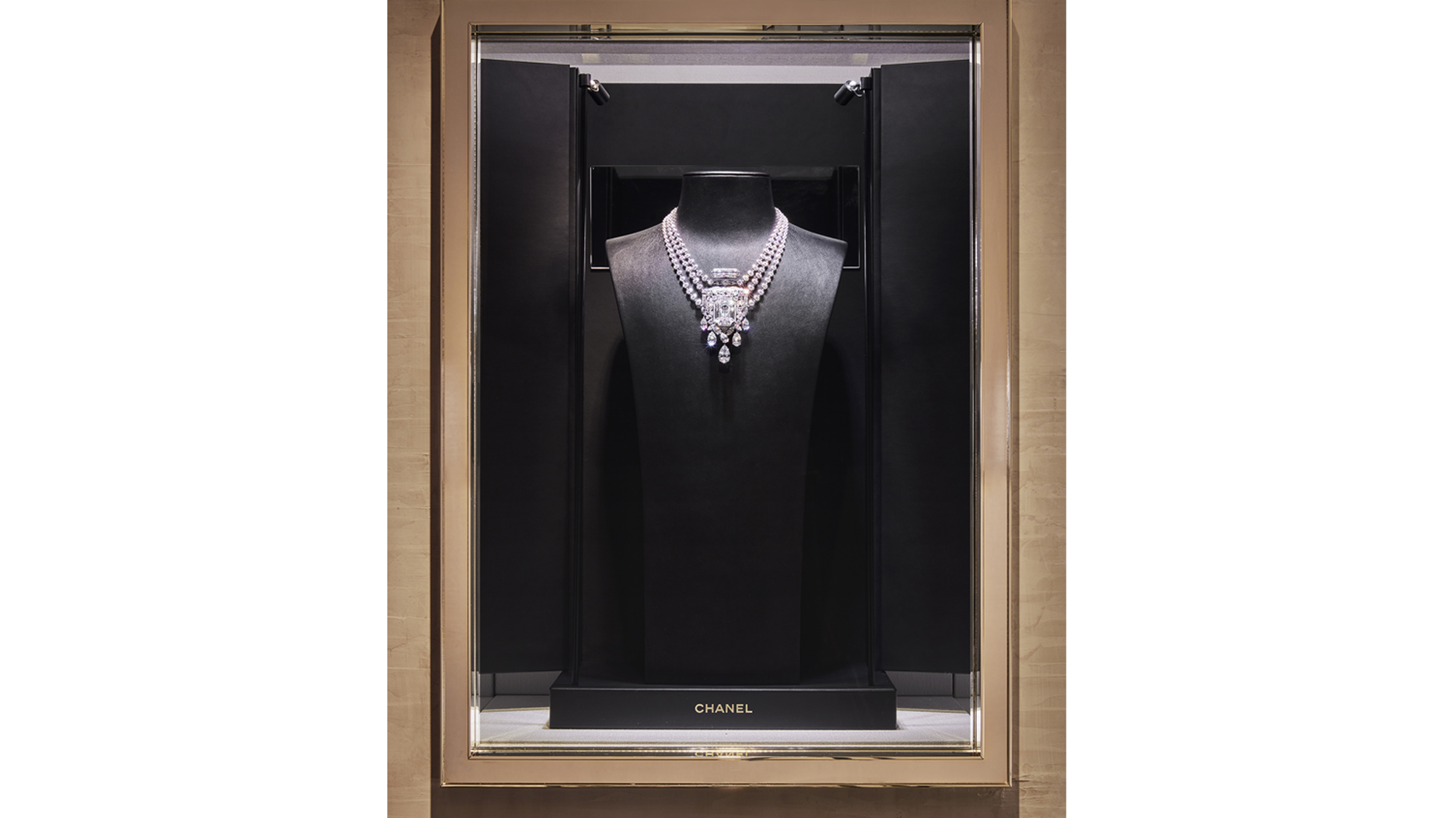 In addition, the necklace Chanel made in 2021 that mimics the shape of the Chanel No. 5 perfume bottle—which is centered on a 55.55-carat D flawless diamond—will be shipped from Paris for the store’s grand opening.