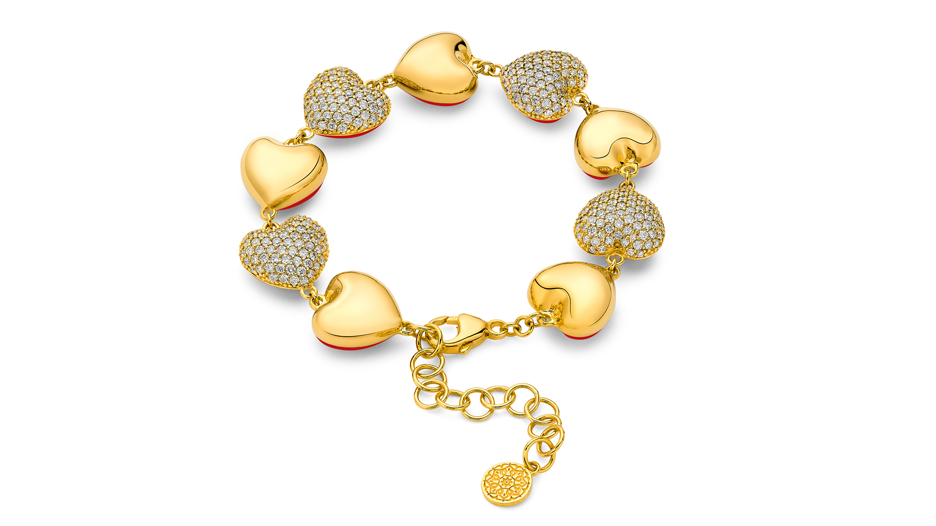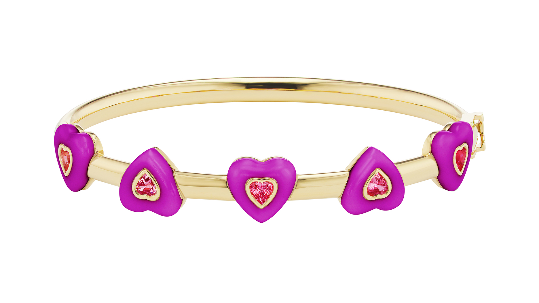 The holiday’s timing perfectly aligns with a few larger trends in jewelry – hearts, enamel, and bold pops of color.