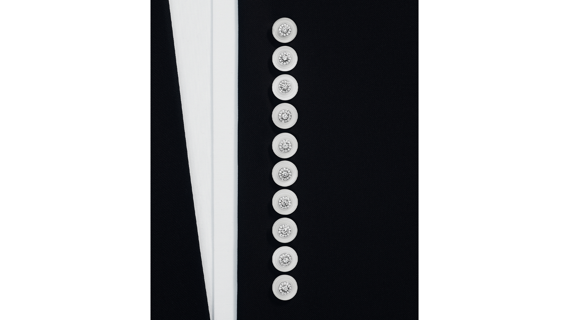 “Les Boutons” or “The Buttons” is a set of 15 white gold, diamond and rock crystal buttons that can be worn individually or combined with others.