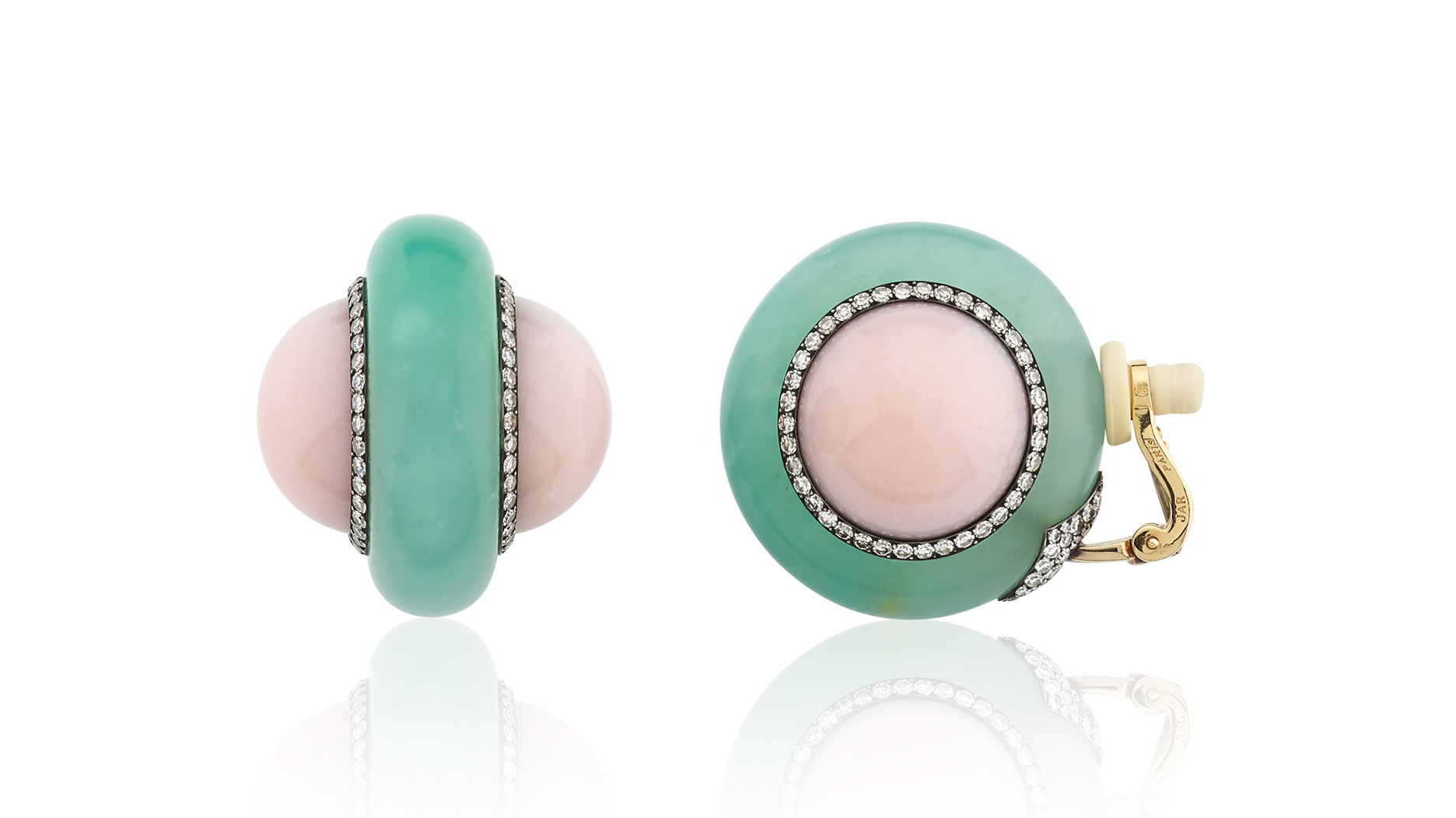 A pair of chalcedony, pink opal, and diamond ear clips from JAR, along with a Sterlé diamond brooch from the 1960s, will be offered as well.