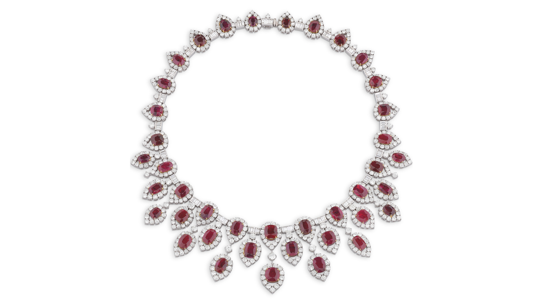 A ruby and diamond necklace went for CHF 406,400 ($448,219), within its estimate, while a ring featuring an 18.01-carat step-cut sapphire sold for CHF 196,850 ($217,106), more than triple its high-end estimate of CHF 55,000 ($60,877).