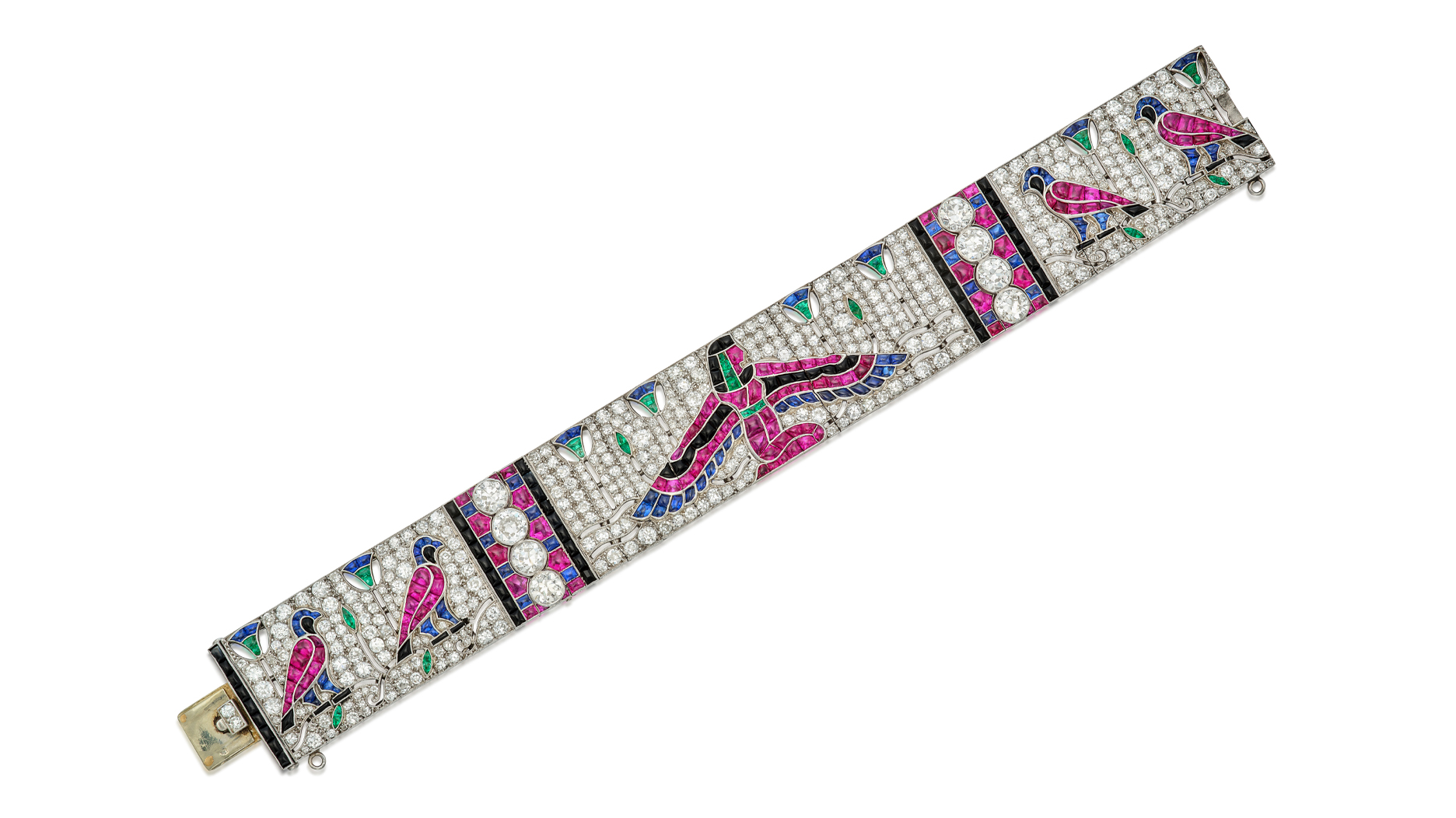 Another Art Deco piece, an Egyptian-inspired colored stone and diamond bracelet from 1925 went for more than $1 million, well above its estimate of $250,000 to $350,000.
