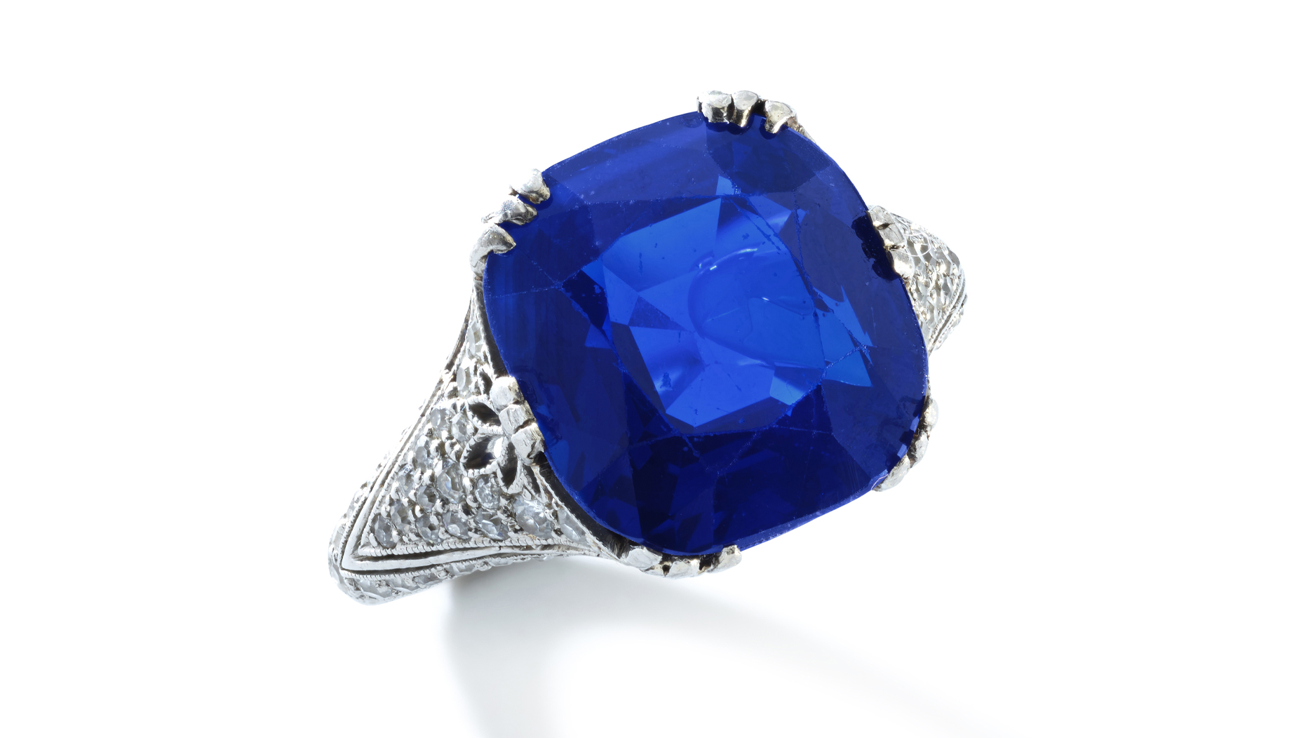 A sapphire and diamond ring by Marcus & Co. featuring a 10.31-carat cushion-cut sapphire sold for nearly $2 million, or $192,047 per carat, against an estimate of $500,000 to $700,000.