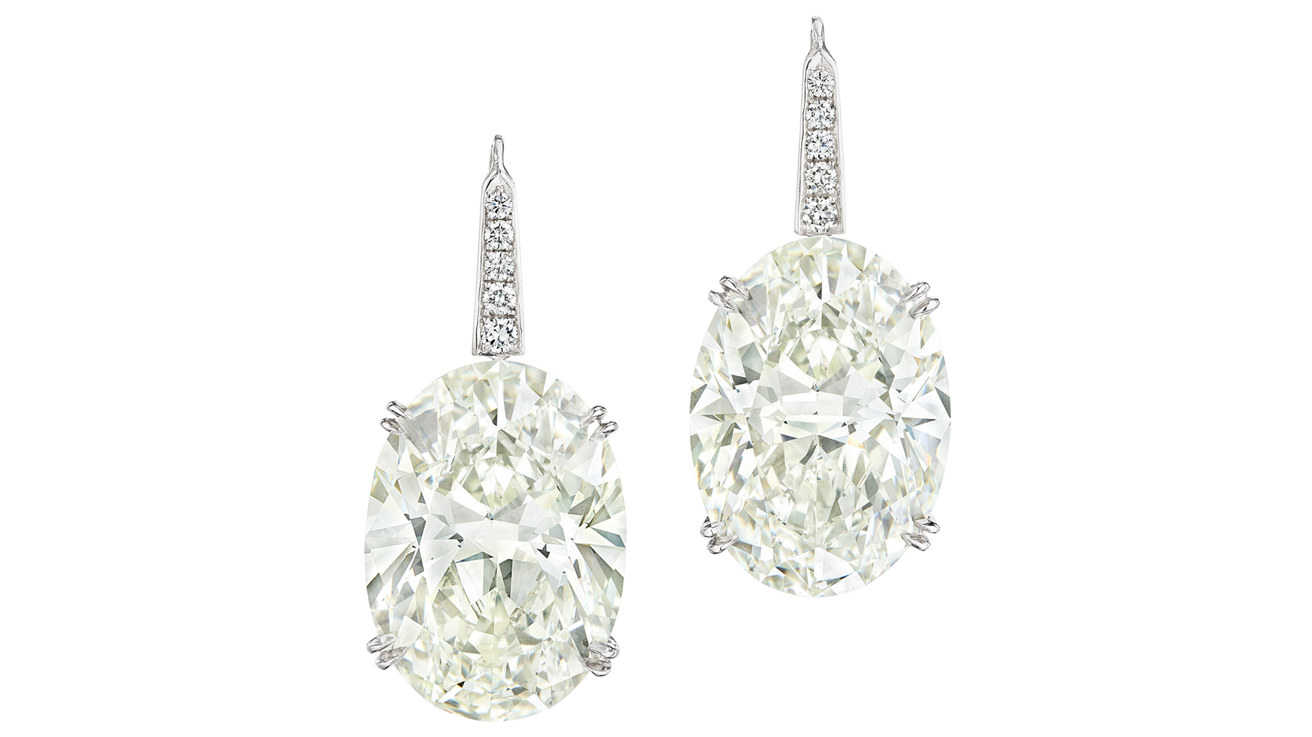 Rounding out the auction’s top five was a pair of pendant earrings featuring I-color, oval brilliant-cut diamonds weighing 23.20 and 23.05 carats and set in platinum and 18-karat white gold.