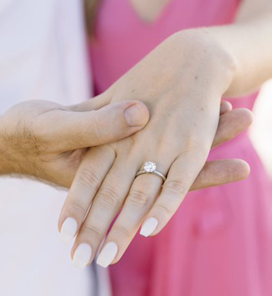 Standing between two rows of palm trees, he presented Taylor with a solitaire round diamond engagement ring from J.R. Dunn Jewelers.