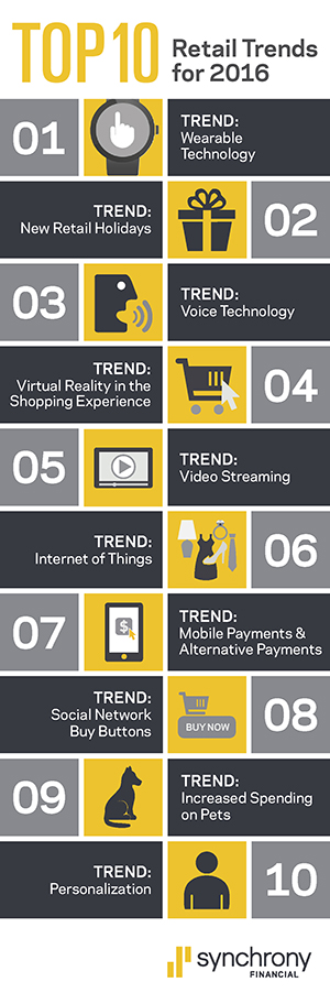 In its latest market brief, Synchrony Financial predicted that technology will shape eight of the top 10 trends expected to have the greatest impact on retail sales this year.