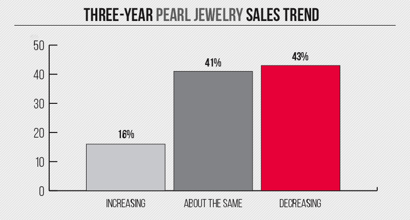 Of those, 84 percent reported that their pearl jewelry sales have declined as a percentage of overall sales in the past three years (43 percent) or stayed about the same (41 percent).