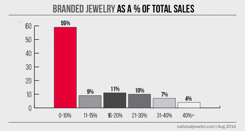 In addition, 59 percent of jewelers said that branded jewelry accounts for 10 percent or less of their overall sales while 21 percent said it was 16 to 30 percent of overall sales.