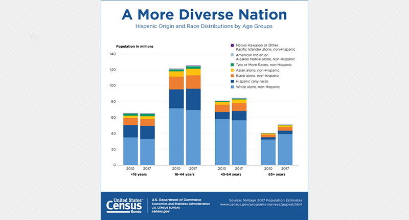 And the non-Hispanic white alone population declined by .02 percent to 197.8 million, making it the only race group to see population decrease between 2016 and 2017. The U.S. Census Bureau also noted that this group is expected to continue aging and declining in number.