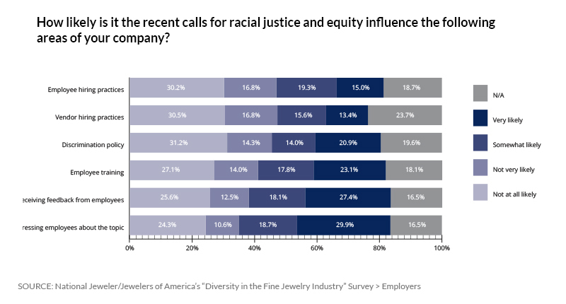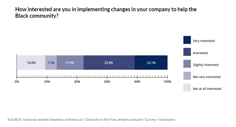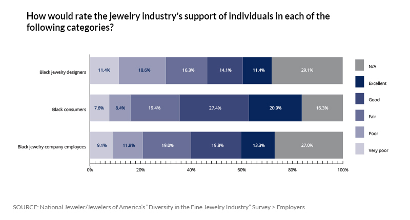 The survey also asked respondents to compare the jewelry industry’s treatment of its Black employees to other industries, and it inquired about their willingness to make it better.