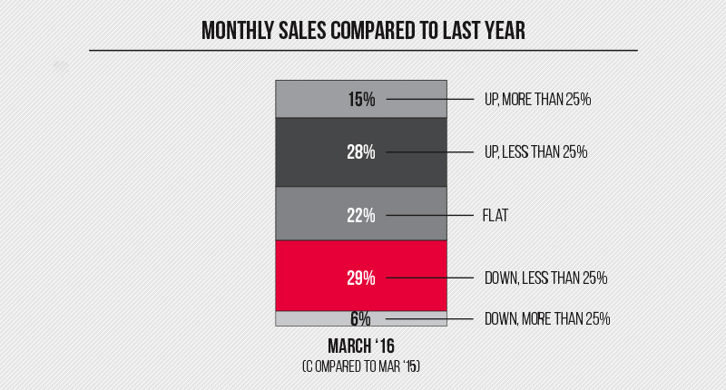 National Jeweler/Jewelers of America’s Business Pulse poll for April also asked jewelers about their store’s sales in the month of March as compared with March 2015.