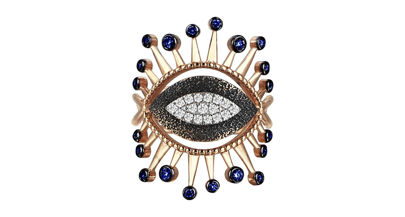 Expanding upon the motif, Karaağaçlı had an array of tiny evil eye studs perfect for (what else?) multiple piercings, as well as more elaborate cocktail rings and pendants.