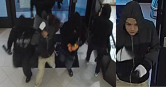 Later that day, four suspects—two with handguns—entered another jewelry store in the city, ordered store employees and customers to lie on the floor, then smashed showcases to remove the jewelry inside. They were out of the store within 30 seconds.