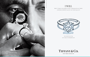 Another ad, from chief gemologist Melvyn Kirtley, reads “I will reject 99.96 percent of the world’s finest diamonds because there’s a difference between quality and Tiffany quality,” which Tiffany said also reminds brides-to-be that the brand’s diamond “superlative standards go beyond the 4Cs.”