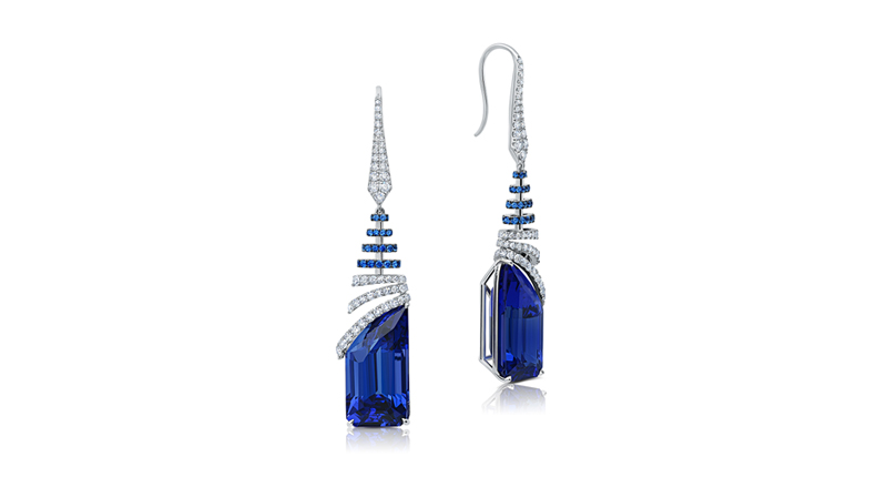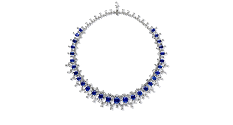 The Tiffany collection on display includes diamond earrings weighing more than 16 carats, a 6-carat fancy vivid yellow diamond ring and a necklace with a sapphire weighing more than 14 carats set in diamonds.