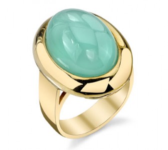 Pretty Little Liars’ Troian Bellisario (below) wore Adeler’s 14-karat yellow gold and chalcedony ring ($3,908) onstage during the 2013 Winter TCA Tour in Pasadena, Calif. on Jan. 10.