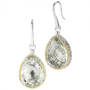 Kelly Clarkson (below with fiancé Brandon Blackstock), who sang “My Country ‘Tis of Thee” at the inauguration, wore DeLatori’s earrings for the event, made in sterling silver with 18-karat gold overlay and green amethyst ($695).
