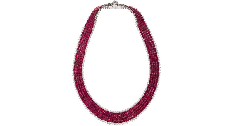 “If you look at a top quality, gem-quality ruby versus the top quality of a diamond—let’s say they’re 5 carats each—the ruby is going to be much rarer and much more expensive than that top-quality diamond because they’re much harder to find,” Christie’s Daphne Lingon told journalist Serena Altschul while showing her several pieces, including a ruby-set Van Cleef & Arpels zipper necklace.