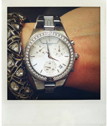 Actress Gwyneth Paltrow (below) wore Baume & Mercier’s Linea 10017 diamond and steel watch ($9,950) in a picture she shared on her website, Goop.com.