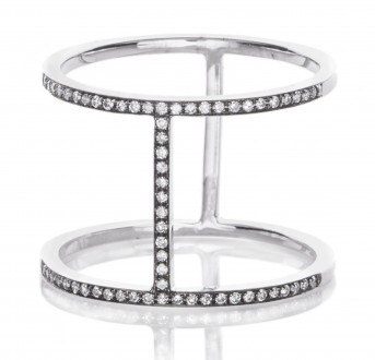 Lucy Hale of the TV series Pretty Little Liars accessorized with 14-karat white, yellow and rose gold bangles with diamonds ($7,260 for the set of three) by Dana Rebecca Designs and EF Collection’s diamond bar ring in 14-karat white gold ($860).