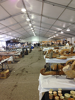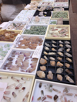 Crystals, crystals and more crystals … I found these during one of many circles through the show inside the hotel. The right shot is what the Pueblo show looked like in the courtyard of the hotel.