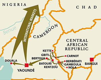 Authored by Offah Obale, PAC’s Ottawa-based conflict minerals researcher who traveled to Cameroon in the spring, the report states that conflict diamonds from the Central African Republic, or CAR, are being either smuggled through Cameroon and exported through other African countries, or being given fake Kimberley Process certificates in Cameroon.