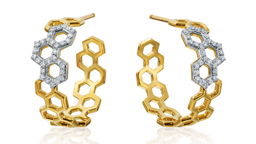 Shortly after learning about the Birks campaign, I discovered that New York-based jewelry brand Gumuchian is launching the “B” collection in Las Vegas, which also gives honeycomb the gold and diamond treatment and benefits a bee-based charity.