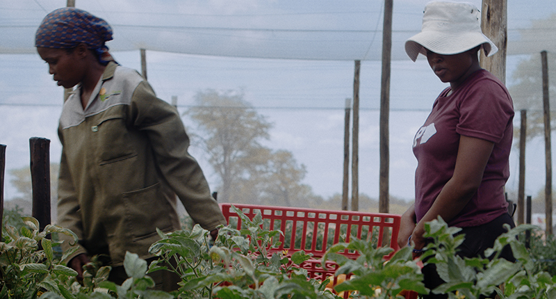The documentary also highlights several projects done in collaboration with diamond mining companies that aim to improve the livelihoods of people in the local communities, including a community garden (as seen in the still below) and a school offering high-quality education.