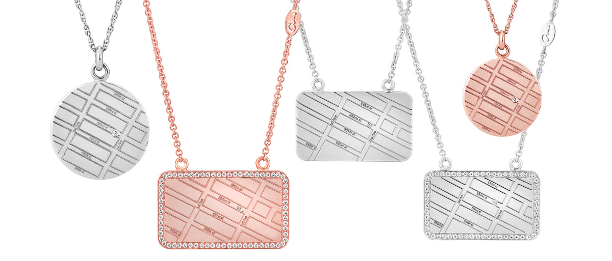 A. Jaffe’s new “Maps” collection offers necklaces, pendants and charms in 14-karat white and rose gold or sterling silver, speaking to the trend of personalization that is popular among today’s consumers.
