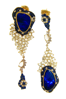 Lady Antebellum’s Hillary Scott wore these asymmetrical Michael John Jewelry earrings with diamonds, sapphires and Australian opals, to the awards ceremony.
