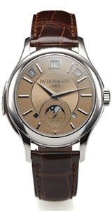 The top lot of the auction was the Patek Philippe Ref. 5207, a tourbillon minute-repeating perpetual calendar watch with a honey-gold dial. A Chinese bidder paid $843,750 for the timepiece, which has a one-minute tourbillon regulator, instantaneous perpetual calendar and moon phases.