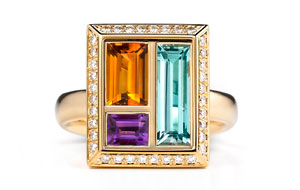 He moved back home after graduation to focus on his technique and design his own jewelry. The Andrew Geoghegan brand was founded in 1998 and now features a bridal and cocktail collection, with a strong focus on rings.